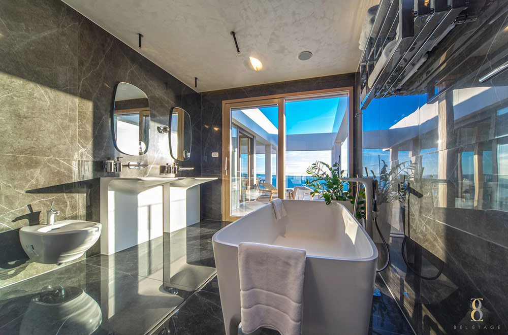 Na najlipšem dilu svita, taman usrid splitskog Žnjana, niknuo je Bel Étage – i promijenio sve. Gorda osmerokatnica, savršeno uklopljena u prekrasan okoliš, zapravo je kondominij s 42 stana, bolje reći 42 luksuzno uređene i opremljene urbane palače s najljepšim pogledom koji se može zamisliti, najsuvremenijim tehnologijama i jedinstvenim zajedničkim sadržajima koji stanarima kroz svih 365 dana u godini pružaju povlasticu bezbrižnog života u potpunom komforu sa svim praktičnim uslugama i pogodnostima koje će im ikada trebati. Bel Étage je postavio sasvim nove standarde stanovanja u Hrvatskoj pa ni ne čudi da su svi stanovi pronašli svoje sretne nove vlasnike još u fazi izgradnje!